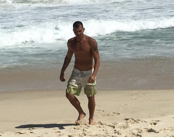 Rogério Casanova curte praia no Rio e exibe boa forma aos 43 anos